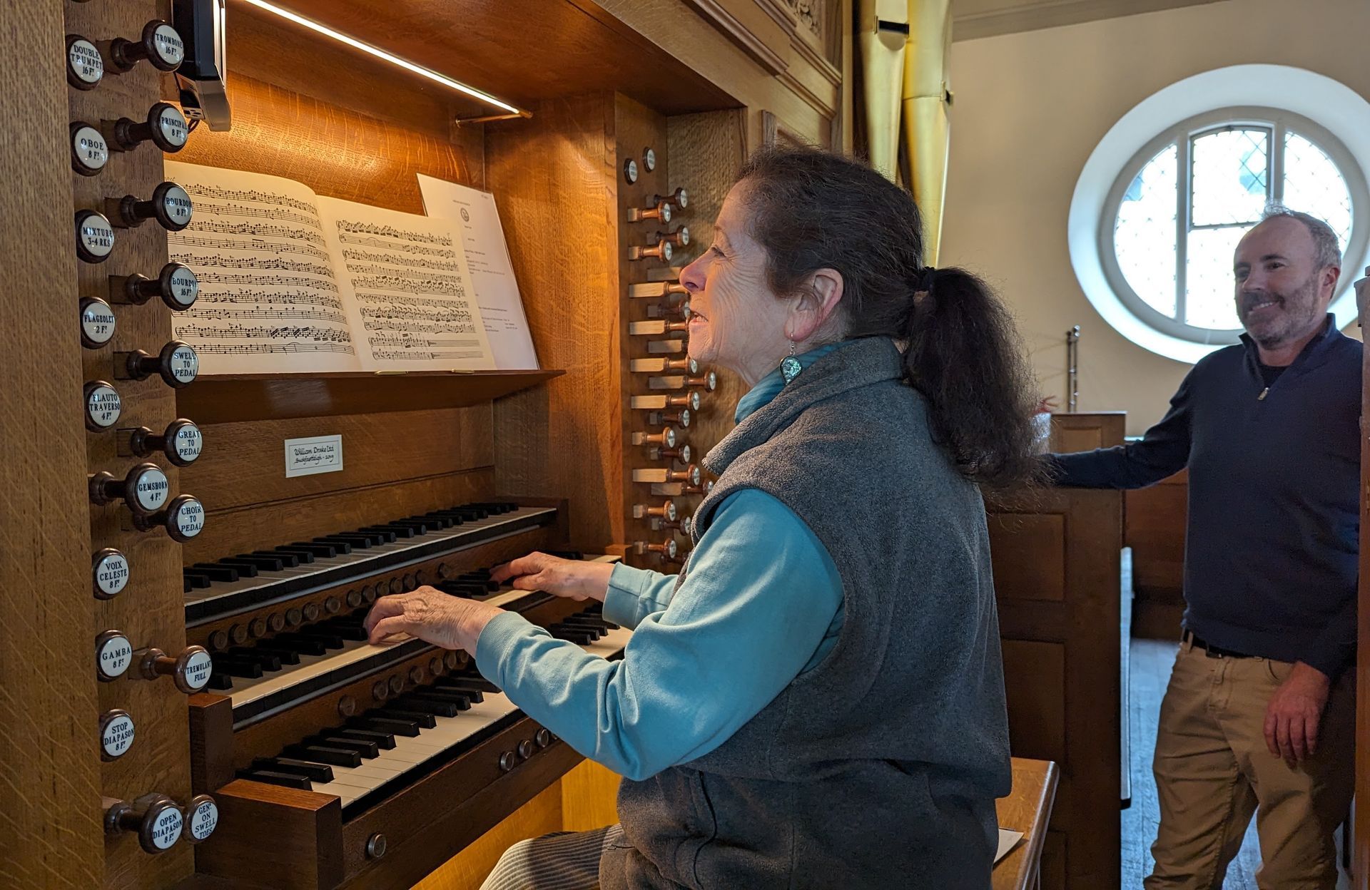 Our member, Glynne Williams, putting the organ at Chelsea Old Church through its paces!